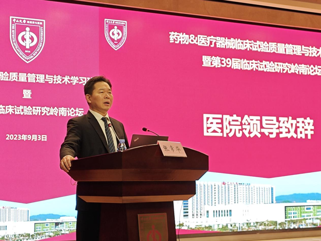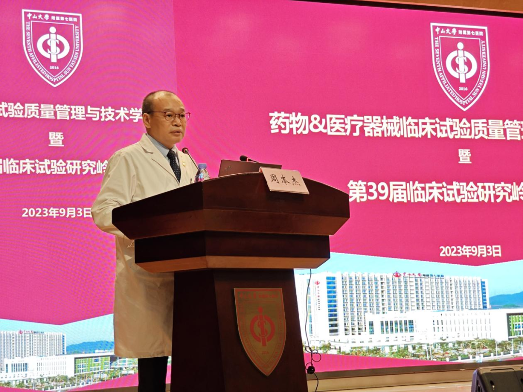 开幕式由我院药学部主任、临床医学研究中心副主任兼药物临床试验机构办公室主任周本杰主持,我院副院长、临床医学研究中心主任张常华教授和广东省审评认证技术协会会长、中山大学临床药理研究所所长黄民教授出席开幕式并分别致辞。
