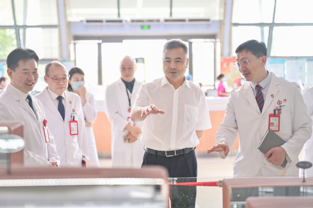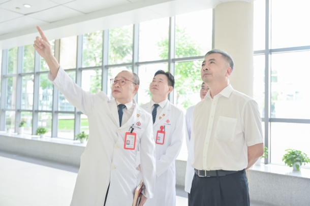 在药学部精准药学实验室和中药煎药室,周本杰主任对药学部搭建的高灵敏度药物分析平台、中药活性物质高通量筛选平台及中药新制剂研发平台等进行了介绍。在中医科住院病房,秦鉴主任汇报了中医科开业以来的建设和发展情况。
