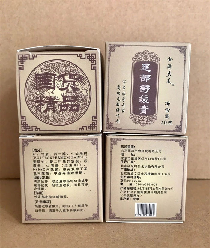 10)足部舒缓膏(军事医学科学院研制):手足皲裂、足干、冻裂,改善足部磨损。