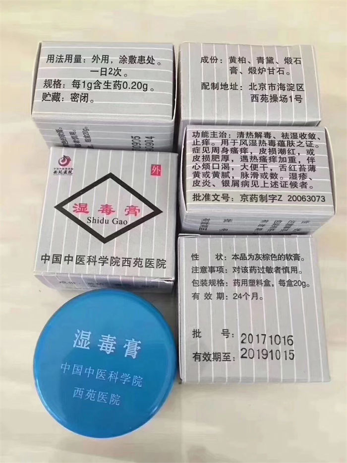 2)湿毒膏:清热解毒、祛湿收敛、止痒。用于风湿热毒蕴肤之症。症见周身瘙痒,皮损潮红,或皮损肥厚,遇热瘙痒加重,伴心烦口渴,大便干,舌红苔薄,黄和、黄腻,脉滑或数。