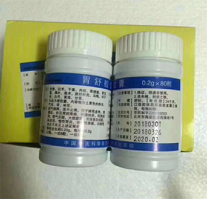 6)胃舒胶囊:益气健、温中止痛,用于慢性胃炎,脾胃虚寒,寒热央杂,肝胃不和之症,胃脘疼痛,胀满、近酸、嗳气。
