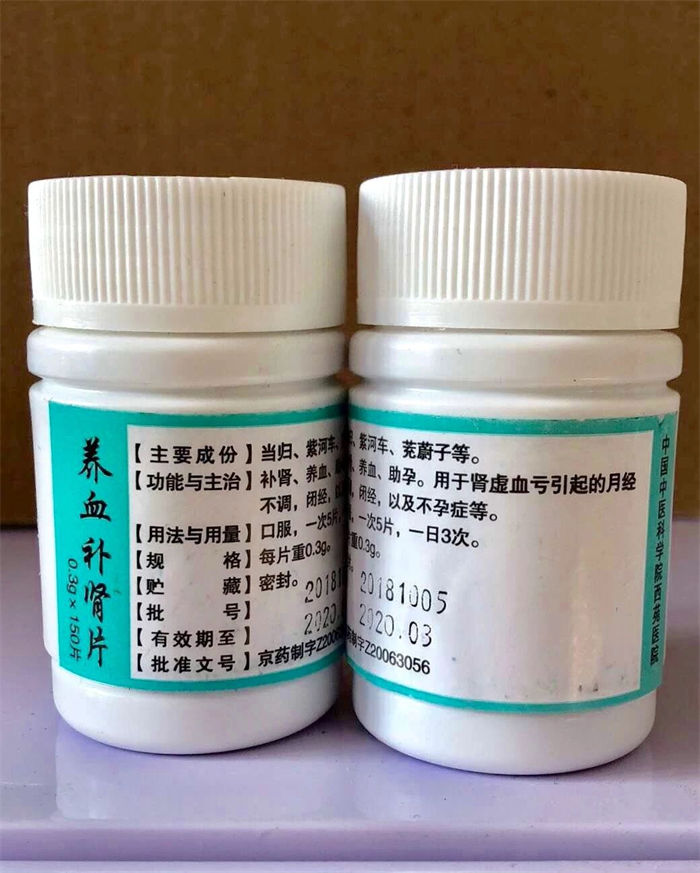 9)养血补肾片:月经量特别少的,月经不调的,闭经的,气血虚的导致的不孕症,吃养血补肾片,效果非常好。