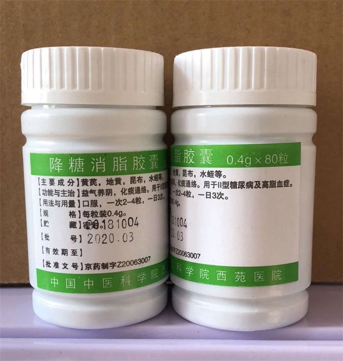 10)降糖消脂胶囊:益气养阴,化痰通络,用于II型糖尿病及高脂血症。