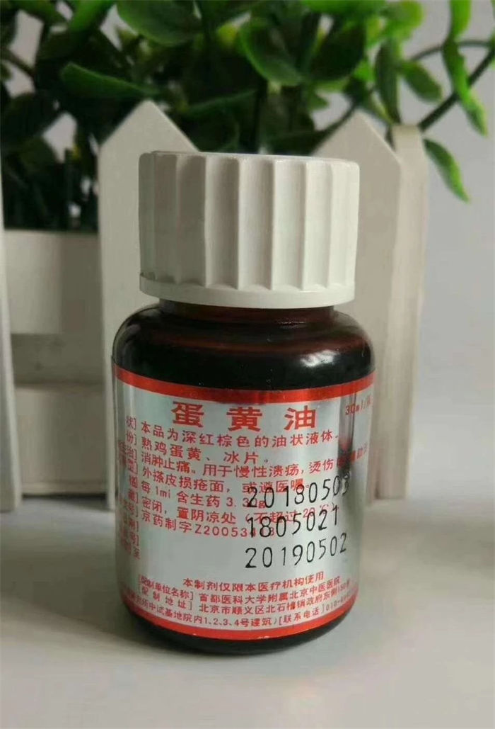 2)蛋黄油:北京中医院内部药品,有消肿止痛,用于慢性溃疡,烫伤的辅助治疗。