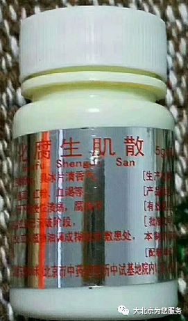 3)化腐生肌散:肢体慢性溃疡,腐肉有脱,伤口久不愈合,褥疮,三年不愈的褥疮用了三天就好了,就是太贵了。