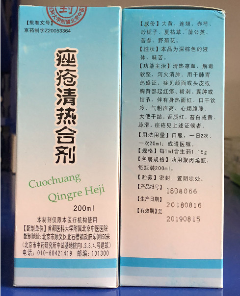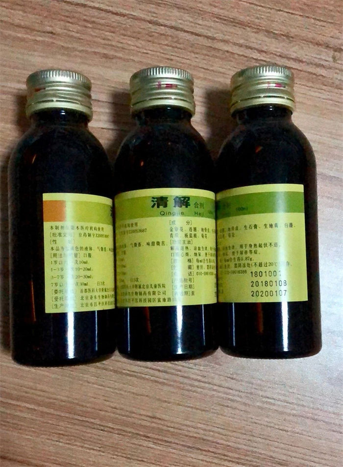 清解合剂:解毒退热,凉血生津。用于身热起伏不退,口渴心烦,纳呆,便干尿赤等症。口服。