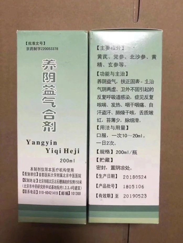 7)养阴益气合剂:提高免疫,抗病毒效果,主治气阴两虚,卫外不固引起的反复呼吸道感染,症见反复咳喘,发热,咽干咽痛,自汗盗汗,肺燥干咳,舌质嫩红,苔薄少脉细滑。