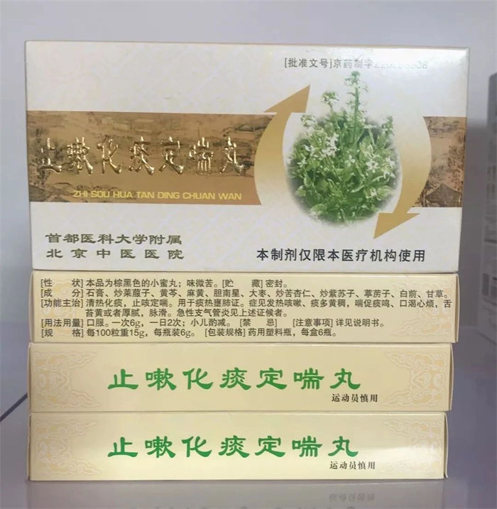 9)止嗽化痰定喘丸:清热化痰,止咳定喘。用于痰浊内蕴型急慢性支气管炎,症见发热咳嗽,痰鸣气喘,口渴烦燥,痰黄而稠。