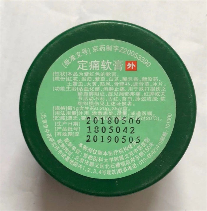 12)定痛膏:北京中医院自治,主治血化痛,消肿止痛,用于跌打损伤,局部肿痛。