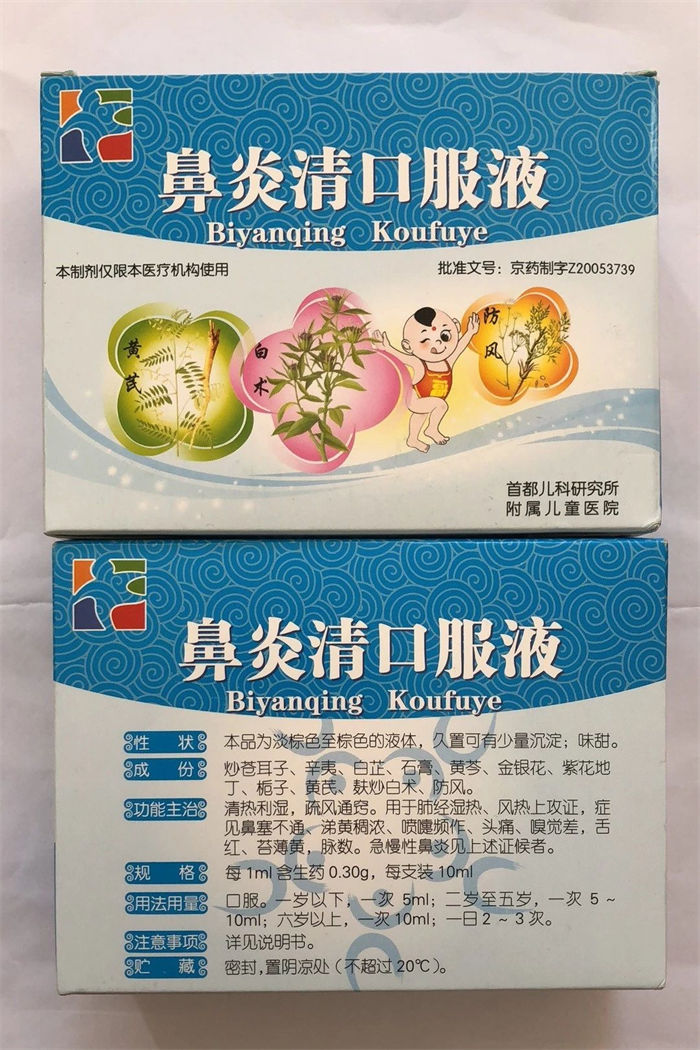5)鼻炎清口服液:清热利湿,疏风通窍。用于肺经湿热、风热上攻证。症见鼻塞不通、涕黄稠浓、喷嚏频作、头痛、嗅觉差,舌红、苔薄黄,脉数。急慢性鼻炎见上述证候者。