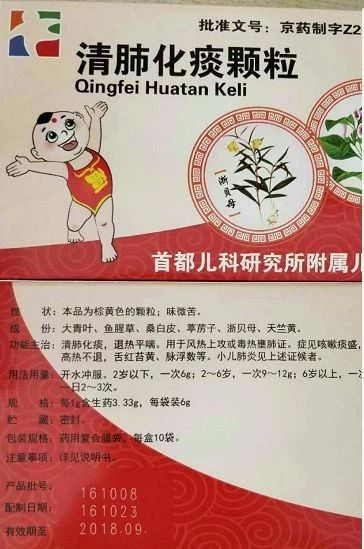 10)清肺化痰颗粒:清肺化痰,退热平喘。用于风热上攻或毒热壅肺证。症见咳嗽痰盛,气促作喘,高热不退,舌红苔黄、脉浮数等。小儿肺炎见上述证候者。