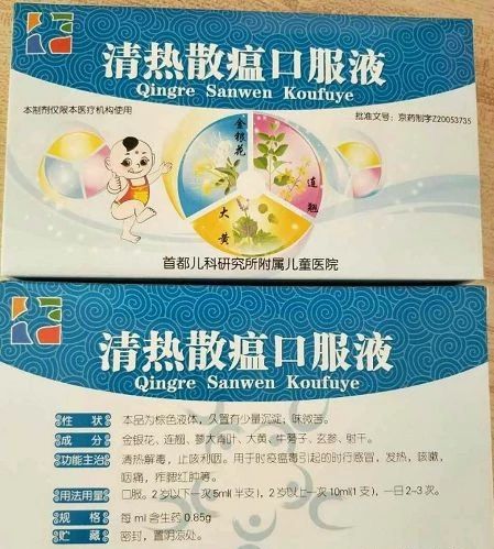 11)清热散瘟口服液:清热解毒,止咳利咽。用于时疫瘟毒引起的时行感冒,发热,咳嗽,咽痛,痄腮红肿等。