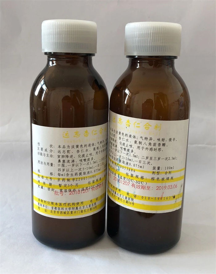远志杏仁合剂:宣肺降逆,化痰止咳。用于外感时邪,鼻塞流涕,咳嗽痰多。口服。