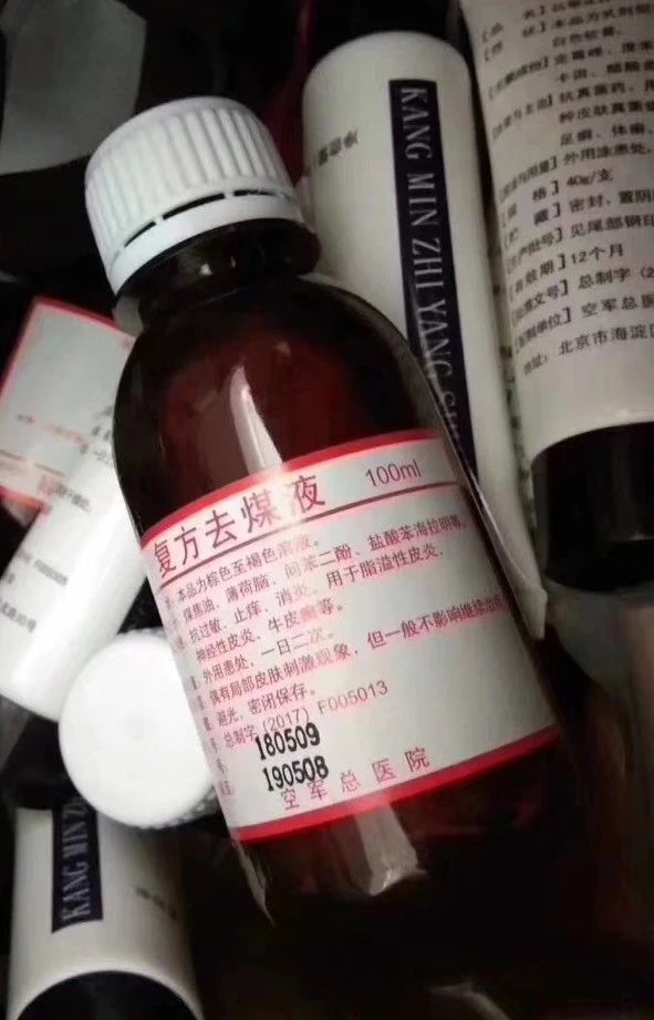 4) 复方去煤液: 抗过敏、止痒、消炎,用于脂溢性皮炎,神经性皮炎、牛皮鲜。