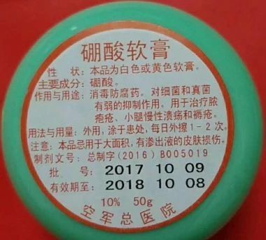 5)鹏酸软膏:消毒防腐药。对细菌和真菌有弱的抑制作用,用于治疗脓疱疮、小腿慢性溃疡和祷疮。