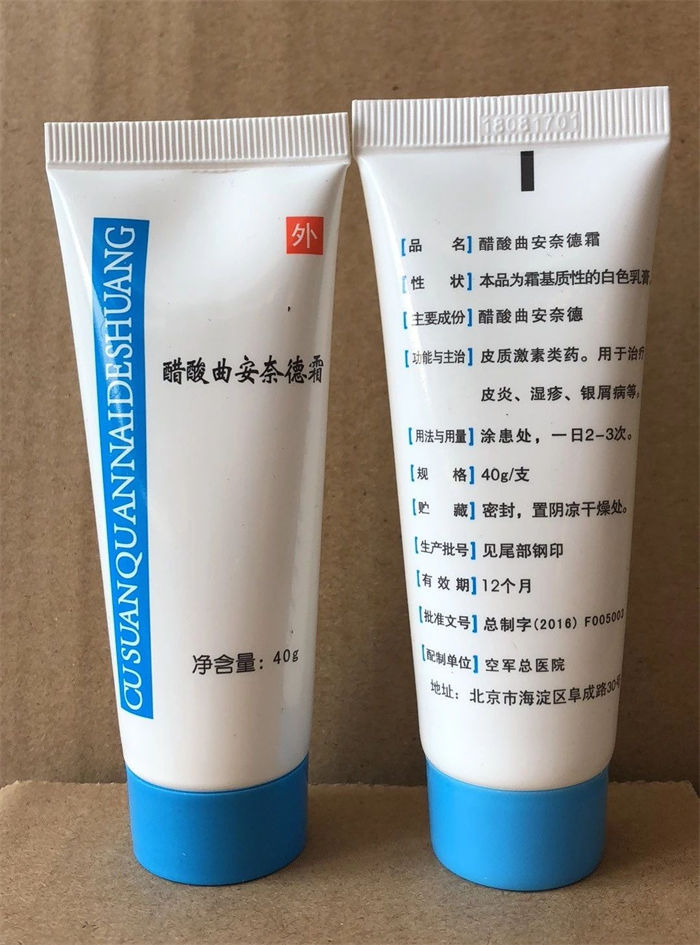 6)醋酸曲安奈德霜:对牛皮癣和荨麻疹等湿疹,皮炎患者有很好的治疗效。