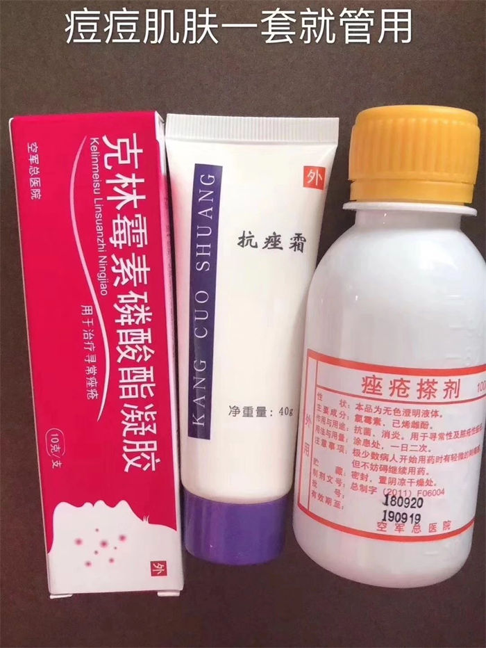 12)痤疮套装:有了这一套,粉刺、痤疮还有什么可怕的。关于痘痘留下的痘坑痘印,不严重的可以用301医院的面膜来修复也可以。稍微严重一点,可以用 可痕开修复。可痕专门修复各种各样的疤痕。温馨提示:疤痕可是越早治疗越好。