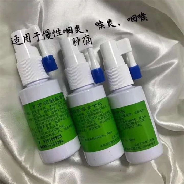 2)复方硫酸新霉素(新咽灵):有抗菌、治疗急、慢性咽炎、喉炎。据反馈:咽炎的朋友嗓子干、痒,一喷见效!