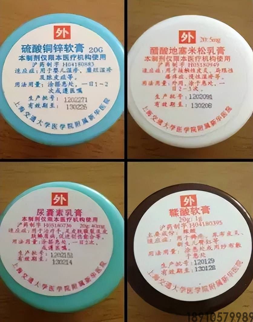 上海新华医院自制的治疗湿疹的神器药膏(新华三件宝):绿白膏、蓝白膏、鞣酸膏。