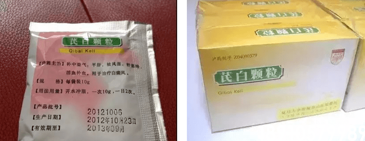 芪白颗粒:上海华山医院自制的治疗白斑的中药合剂。