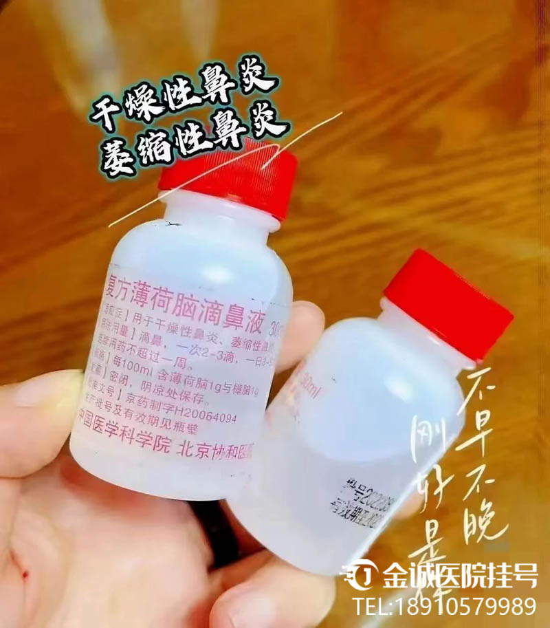 九、复方薄荷脑滴鼻液 复方薄荷脑滴鼻液 北京协和医院自制 治疗干燥性鼻炎,萎缩性鼻炎等,滋润保护鼻腔粘膜,还具有刺激鼻粘膜的细胞再生的作用以及鼻出血。30ml/瓶