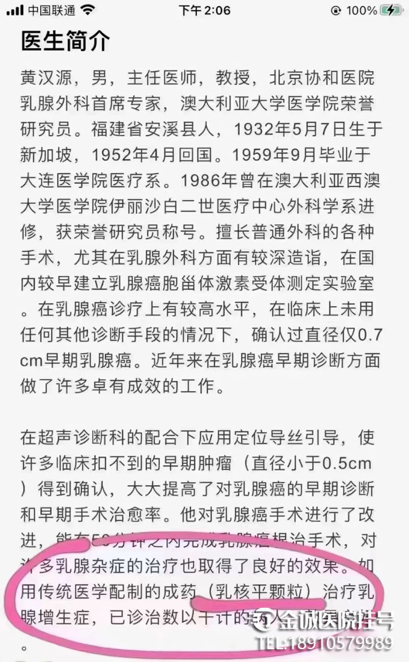 三、乳核平颗粒 北京协和医院乳腺教授黄汉源研发的,黄老年轻时在澳大利亚进修,荣获了研究员称号!现在协和医院乳腺专家,基本都是黄老的学生!乳核平颗粒真的目前来说,在中国治疗乳腺增生就是NO.1