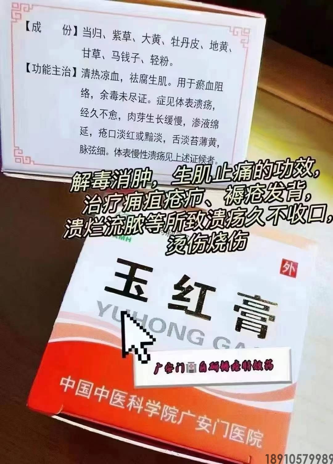 ⑴活血:玉红膏属于中药方剂,主要是由当归、白芷、紫草、甘草、轻粉等药材组成。该药物中含有当归的成分,具有较好的活血效果,能够促进局部血液循环,减少血瘀的现象。