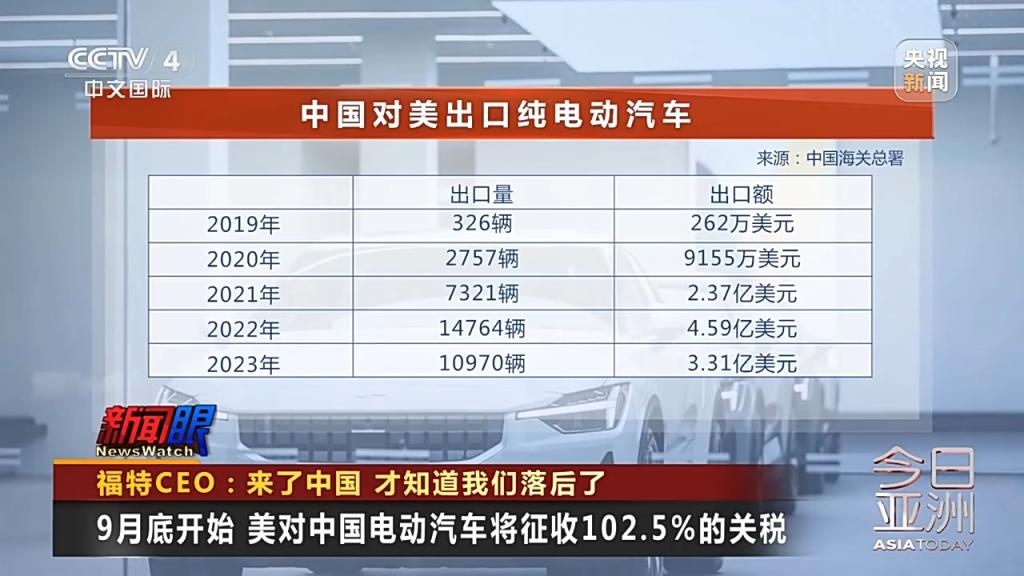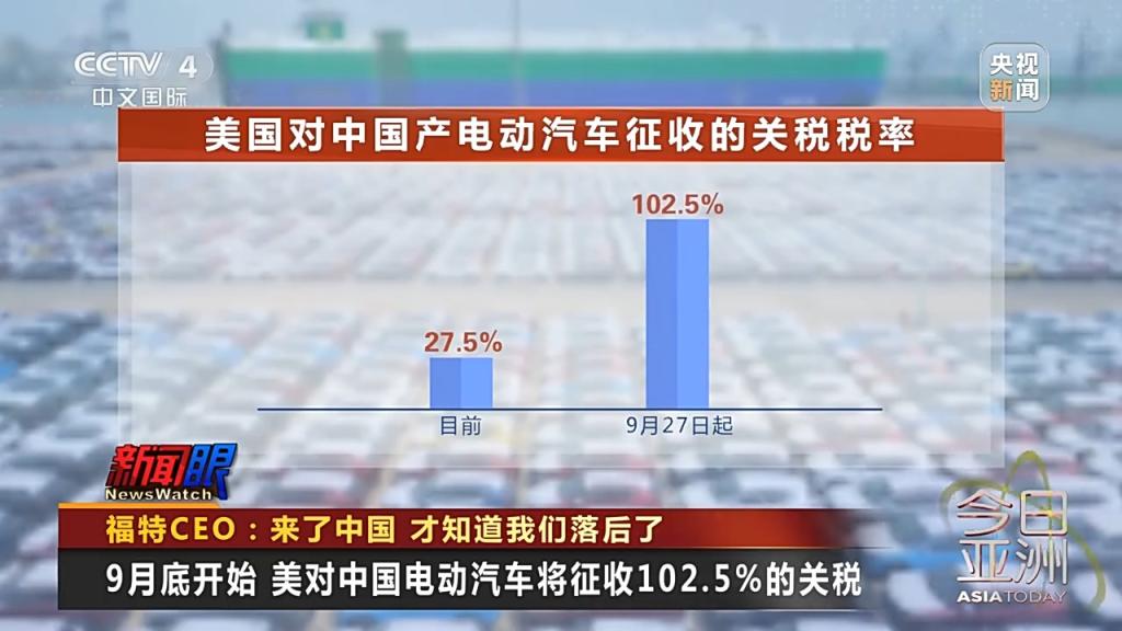 9月底开始 美对中国电动汽车将征收102.5%的关税
