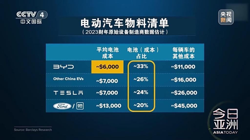 不仅是电池,中国企业在几乎所有其他类别的成本方面,都远远低于福特和通用等美国传统车企。