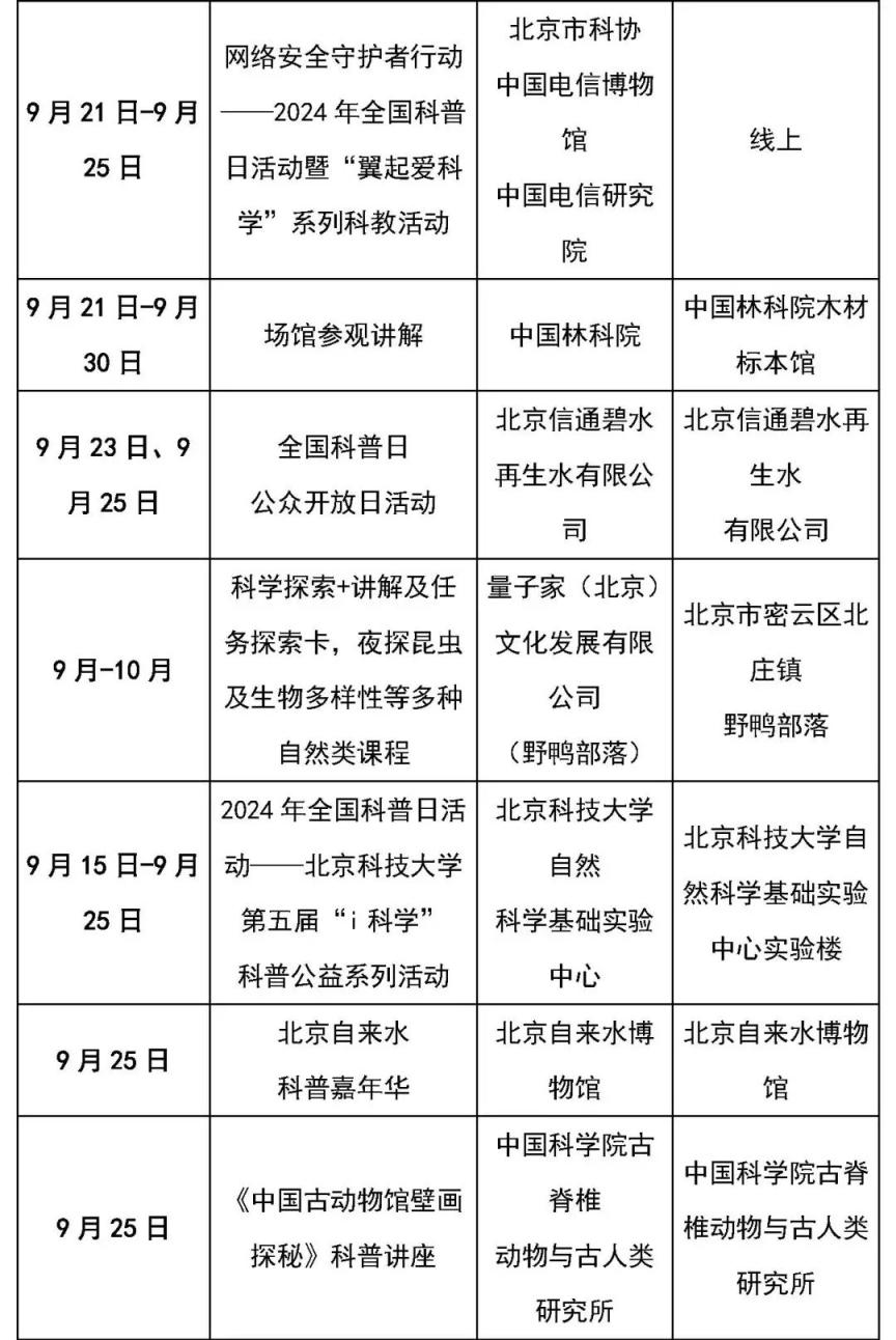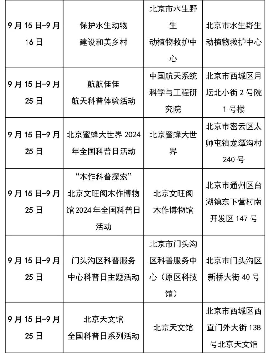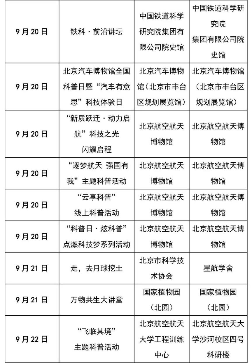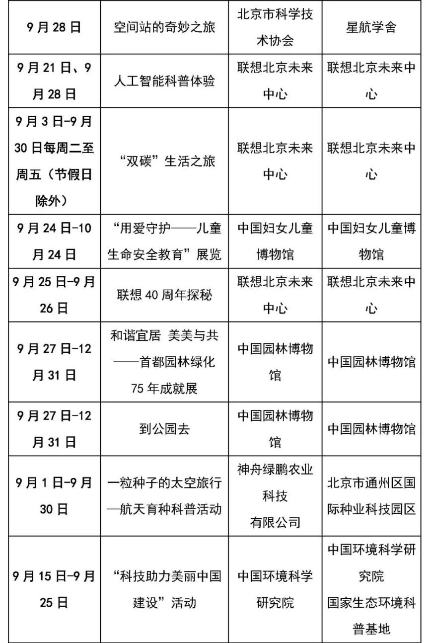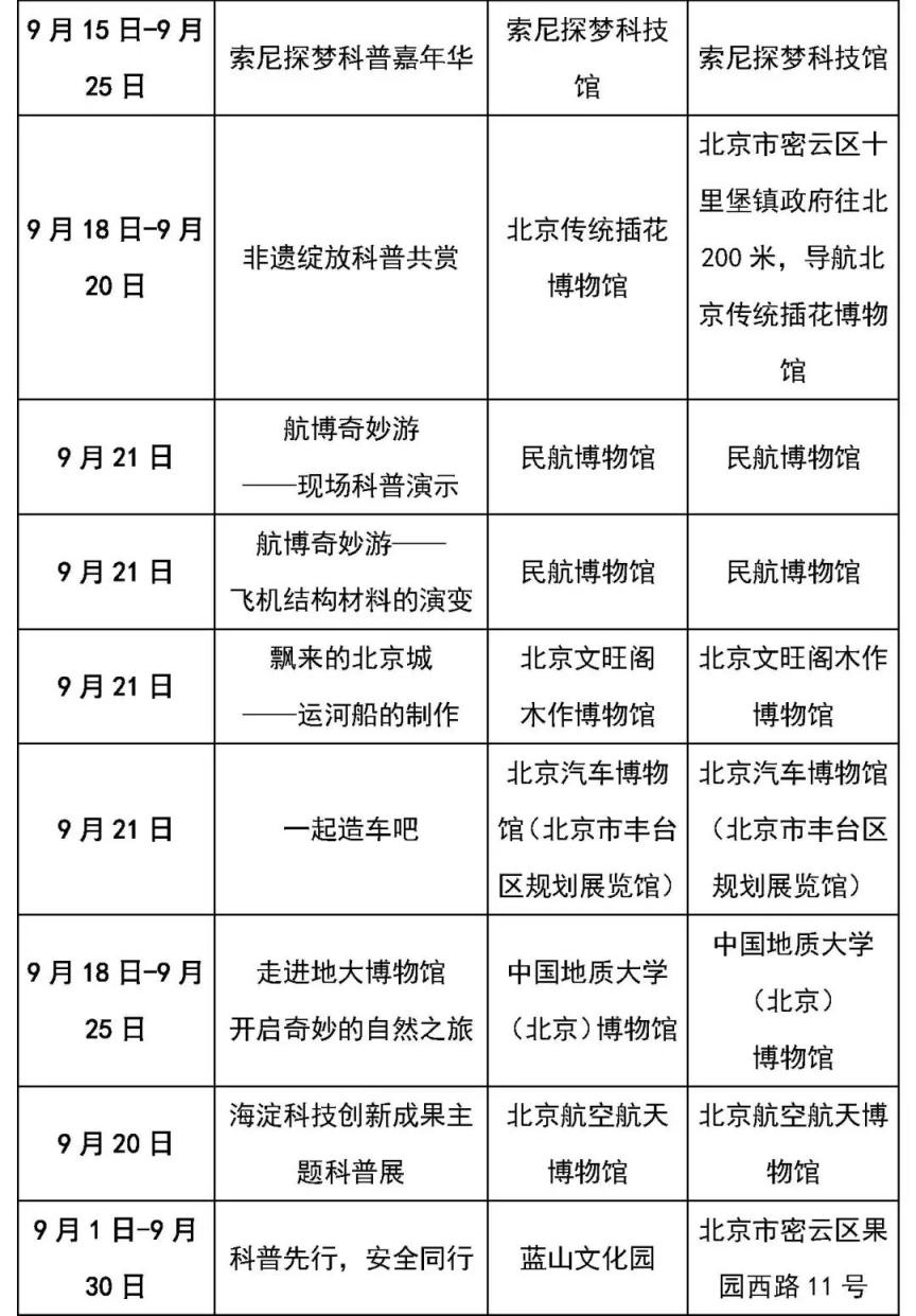 一起来看科普主题线路和科普场馆的活动清单吧