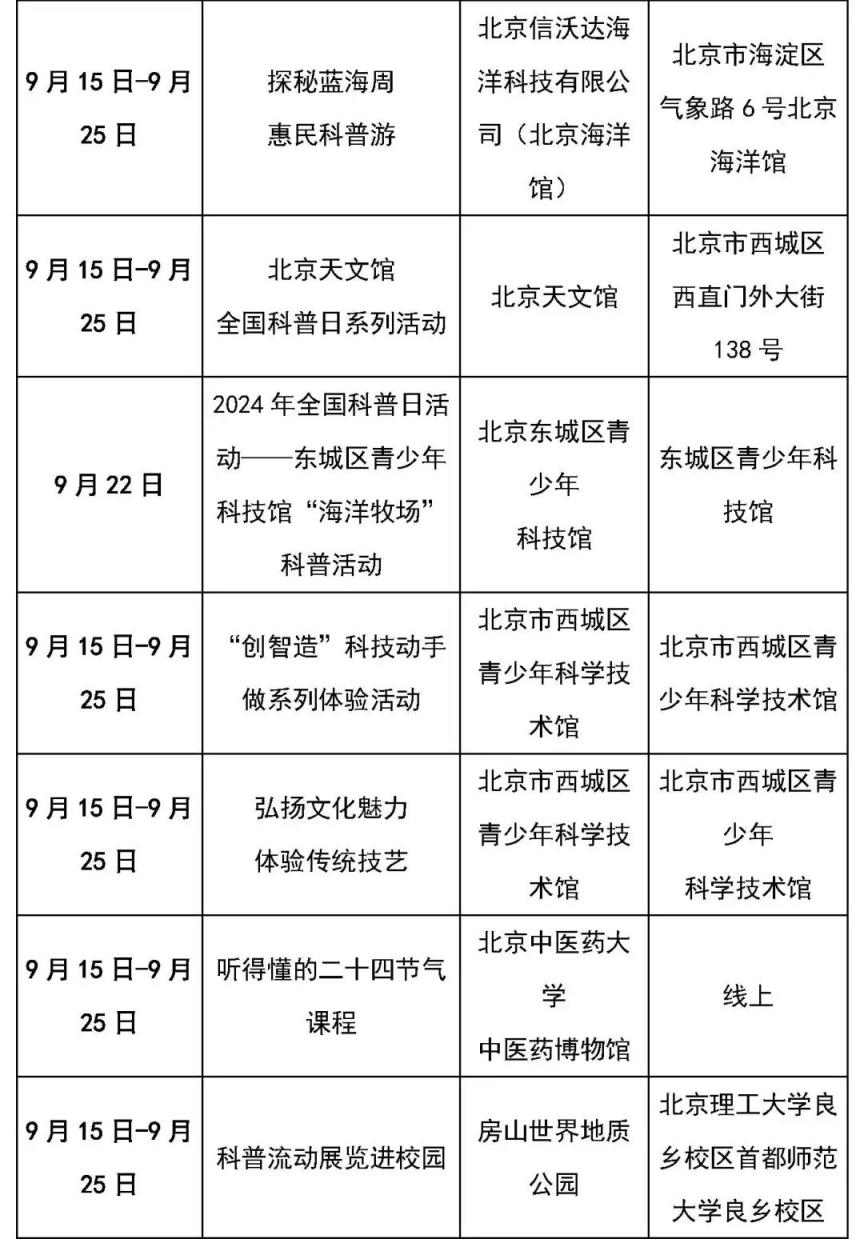 2024年全国科普日活动日前在全国各地启动,活动将持续至9月25日。近日,北京科协设置20条科普主题路线,遴选50家科普场所,优惠或延时对外开放,组织公众开展扫码打卡活动。