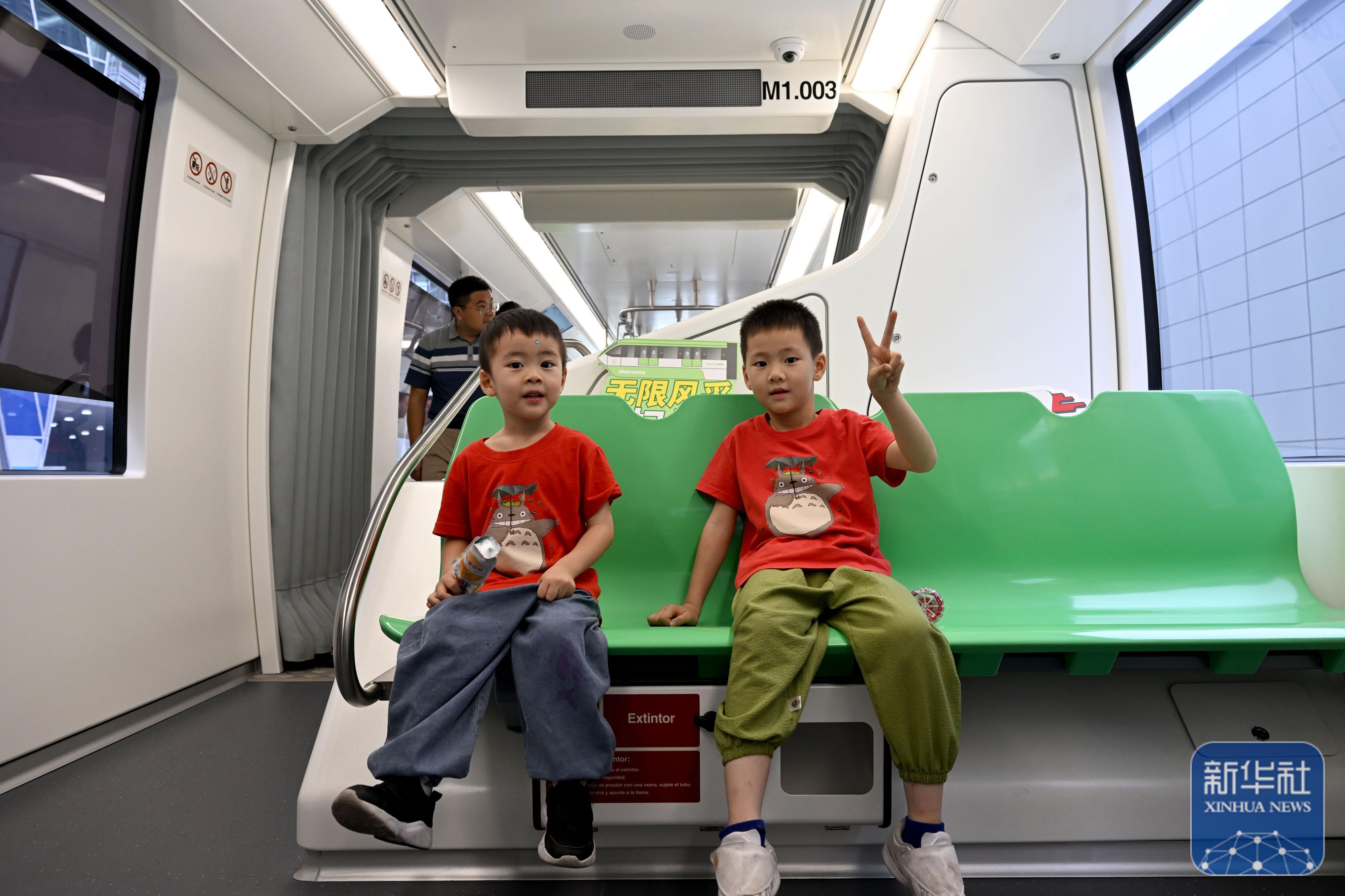 9月21日,在2024世界制造业大会上,小朋友体验一款跨座式单轨列车。
