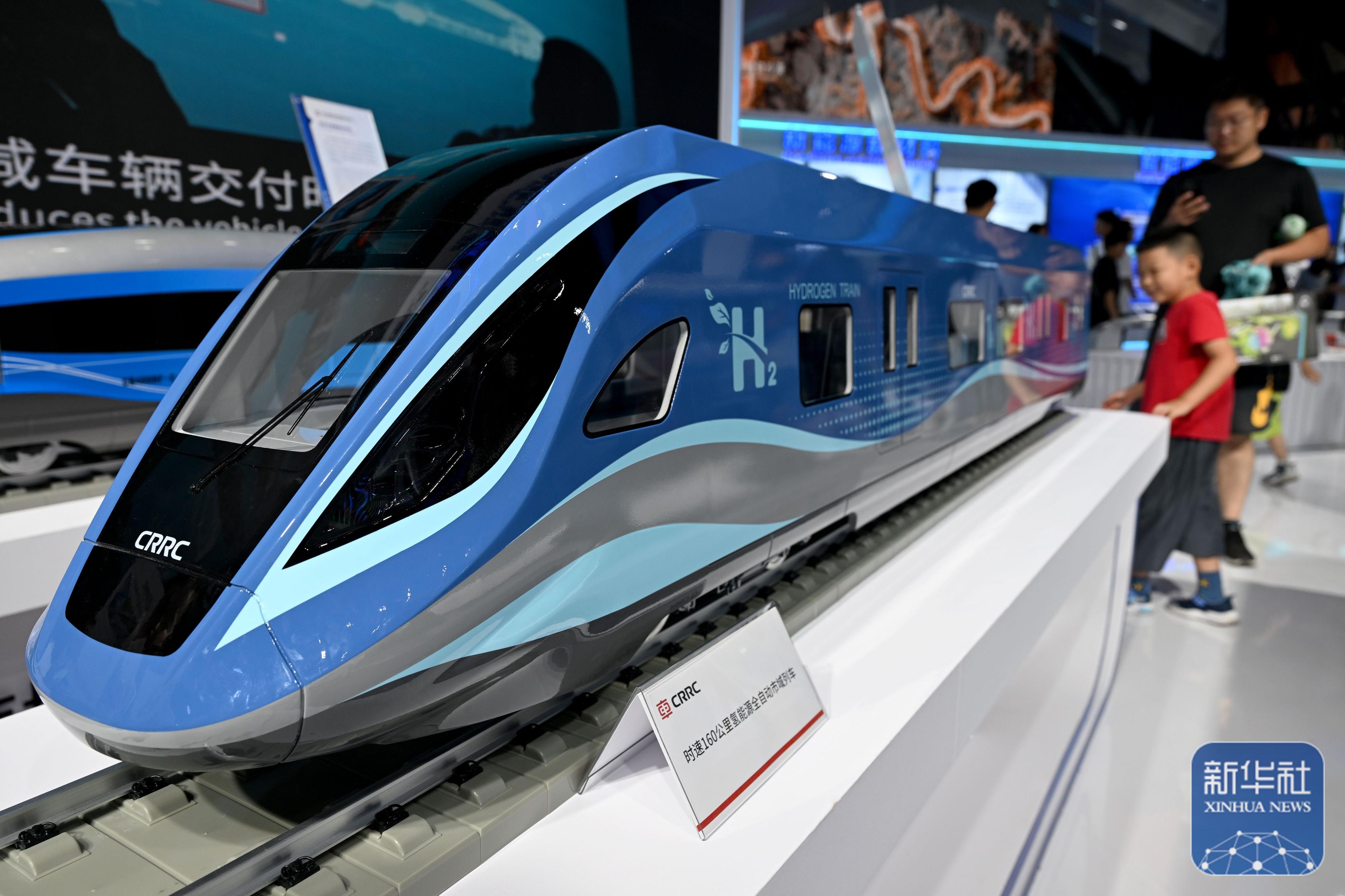 9月21日,在2024世界制造业大会上,人们参观氢能源全自动市域列车模型。