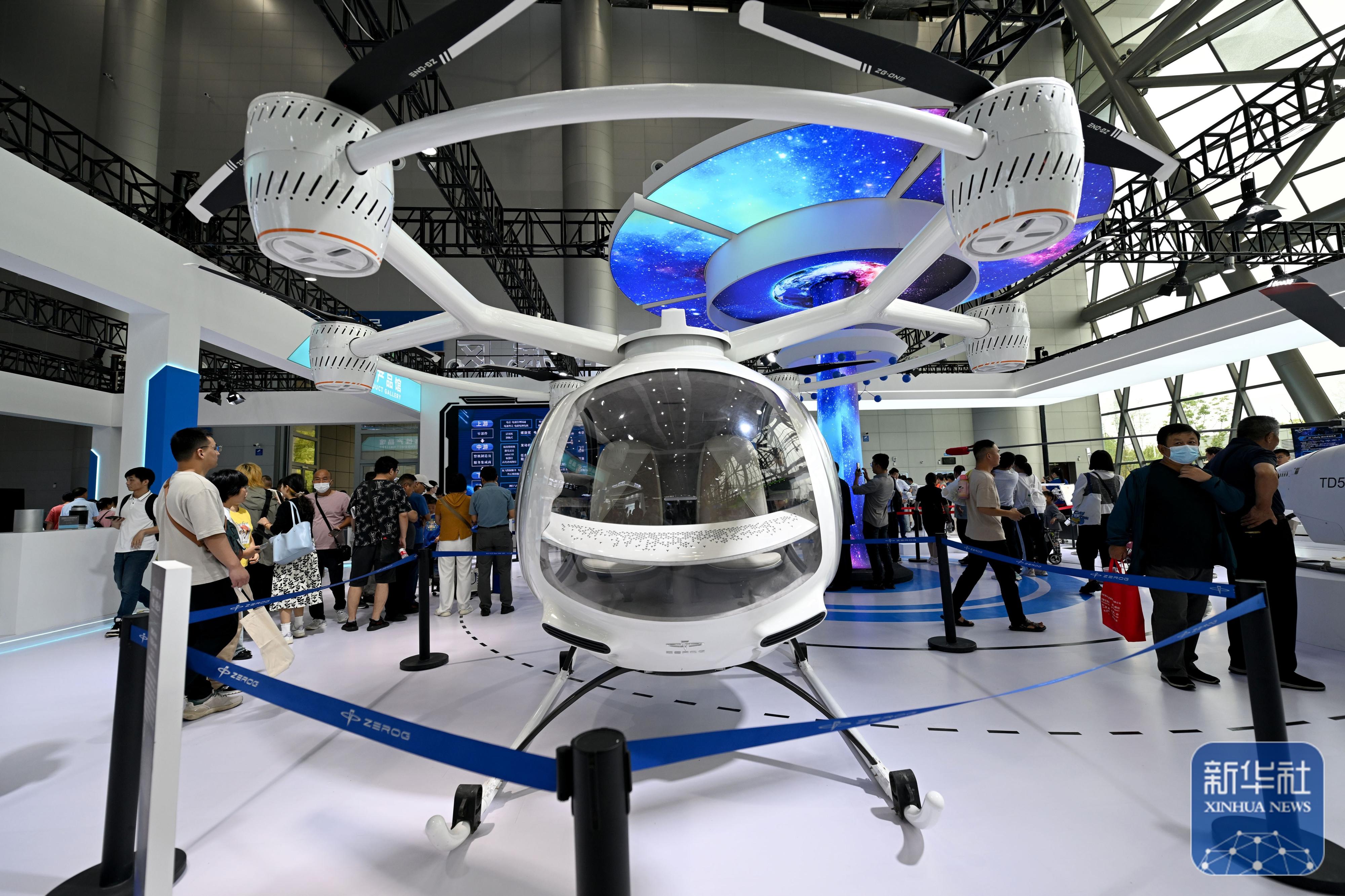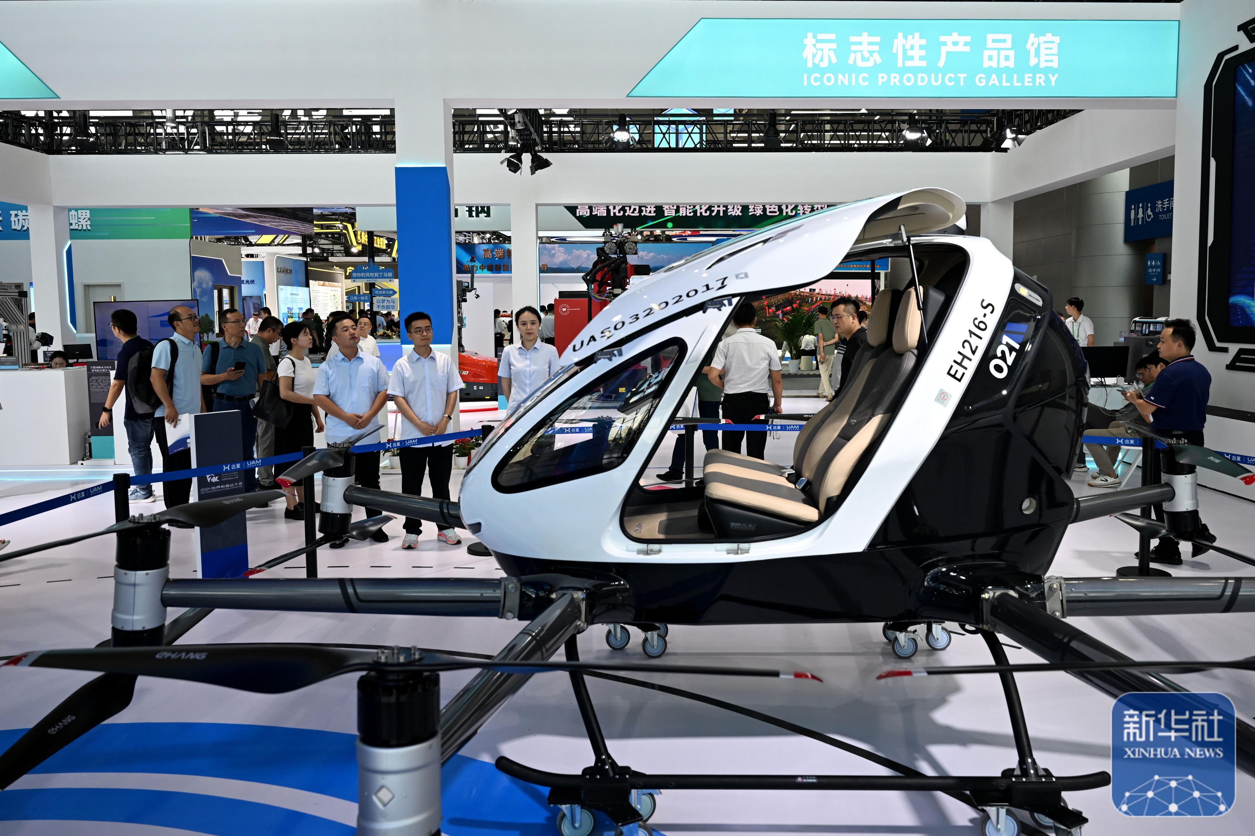 9月20日,在2024世界制造业大会上,人们了解一款载人级无人驾驶电动垂直起降航空器。