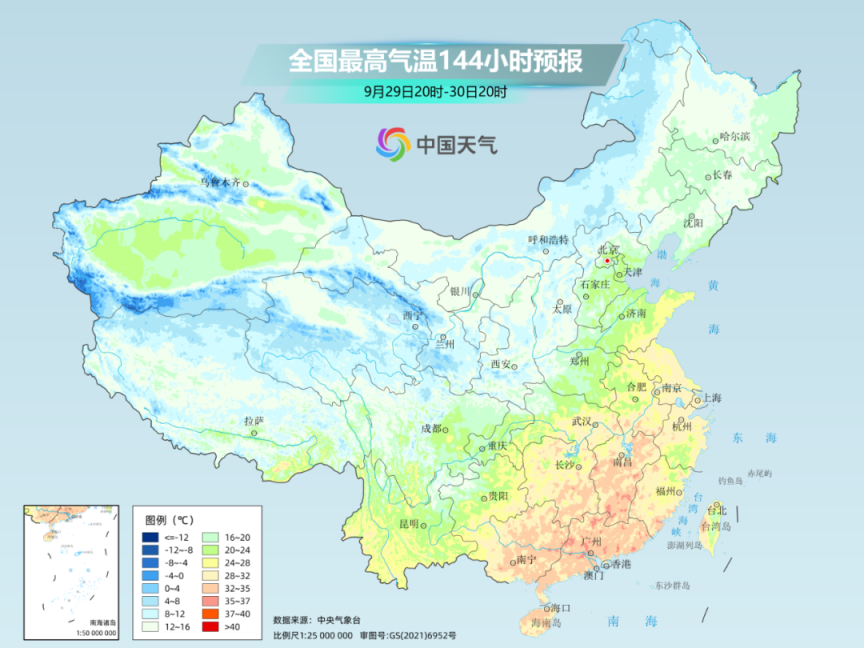 △9月以来,我国大部地区气温较常年同期明显偏高。