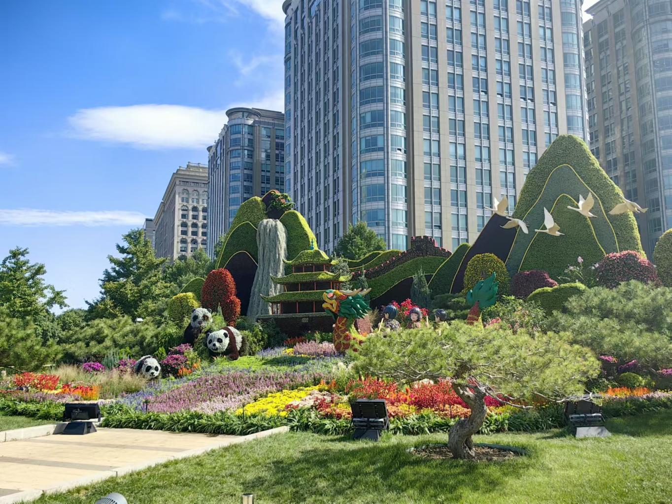 “岳阳楼、长城、龙舟,还有祖国绚丽多彩的绿水青山,浓缩呈现在花坛景观里,每次路过看到心情都非常好。”在东单附近上班的刘红劭告诉记者,“大美中国”花坛的布置让自己想到近年来生态环境保护力度持续加大,美丽中国建设不断取得的新成就,“蓝天白云越来越多,我们的城市、我们的祖国正在变得更宜居、更美丽。”