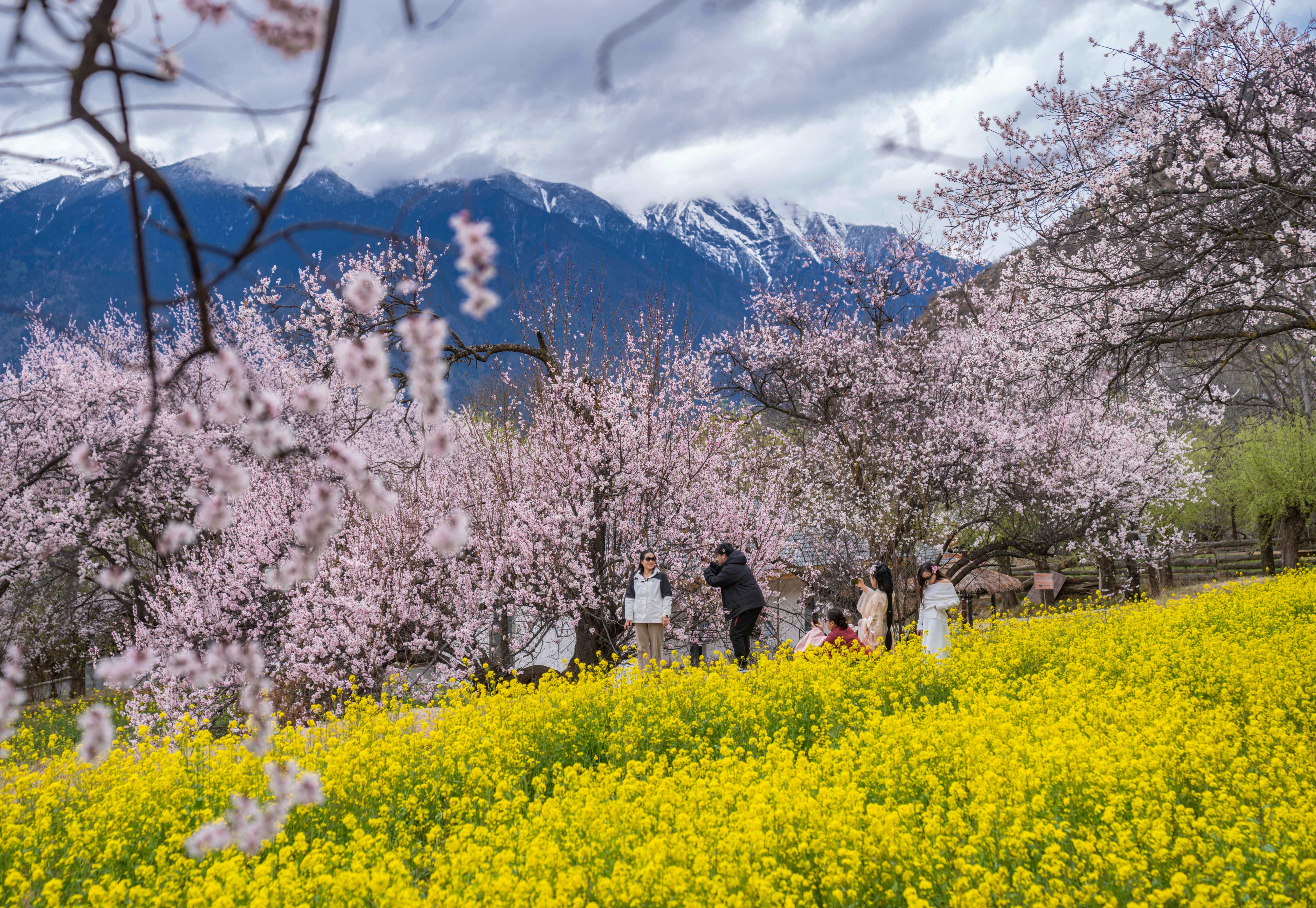 2024年3月31日,游客在西藏林芝嘎拉村拍照留念。新华社记者孙非 摄