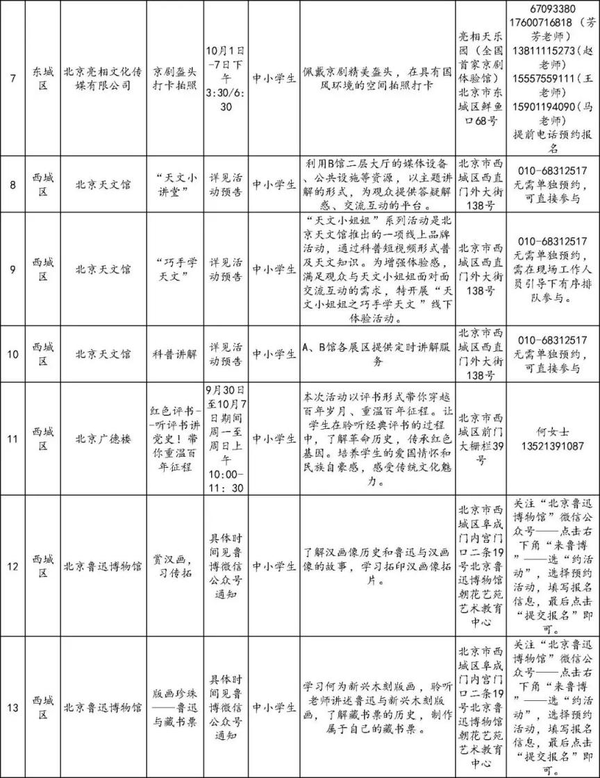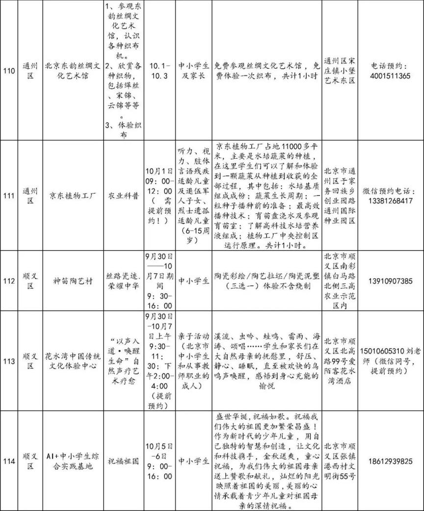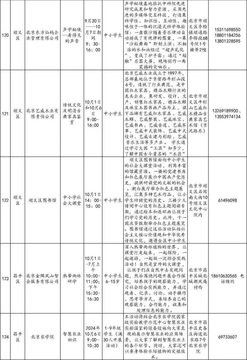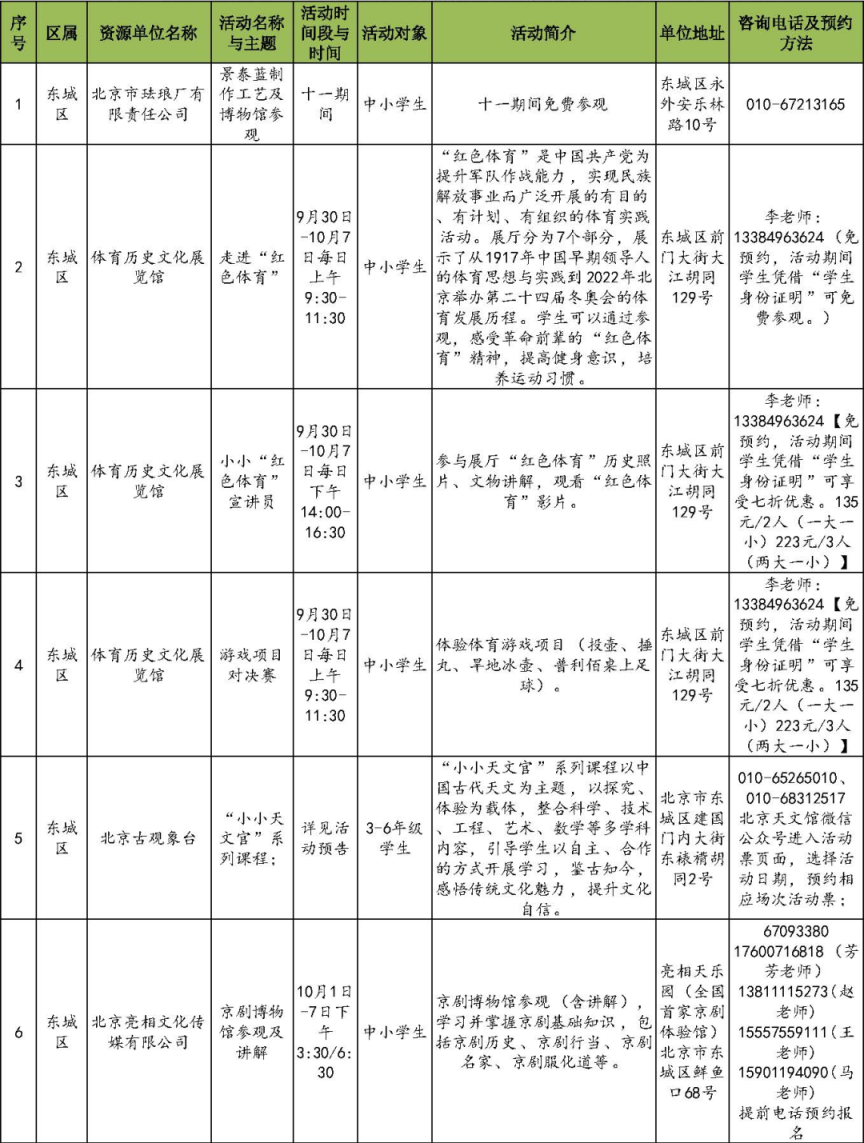 为丰富全市中小学生十一国庆假期文化娱乐生活,发挥社会大课堂资源单位支撑学生成长的教育功能,110家社会大课堂资源单位在国庆期间开展186项相关活动,涵盖文化、艺术、科技、体育、实践活动等多种类型,供学生选择。一起来看