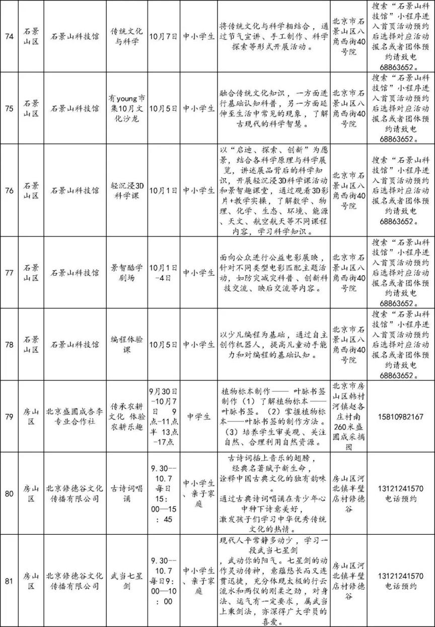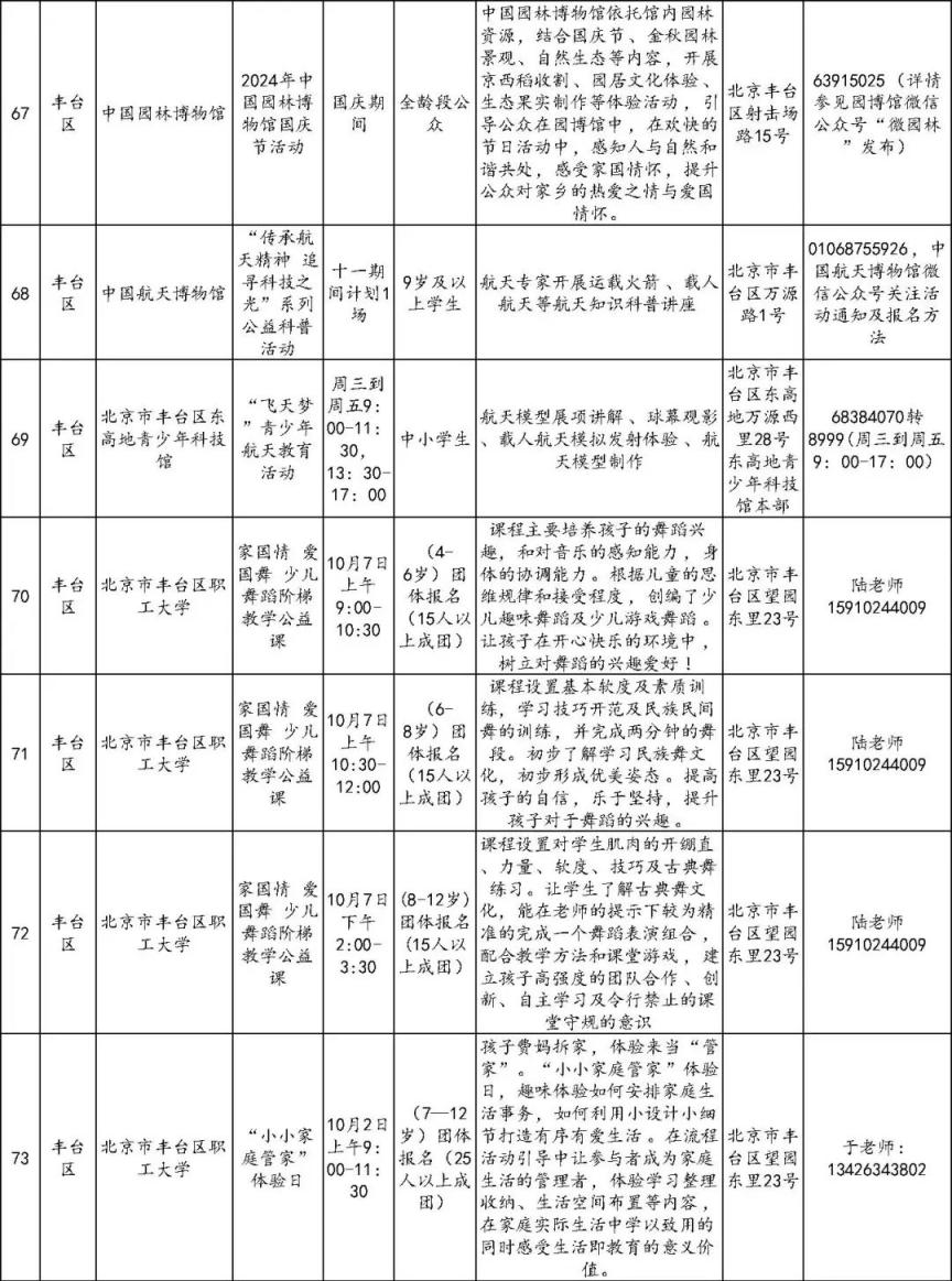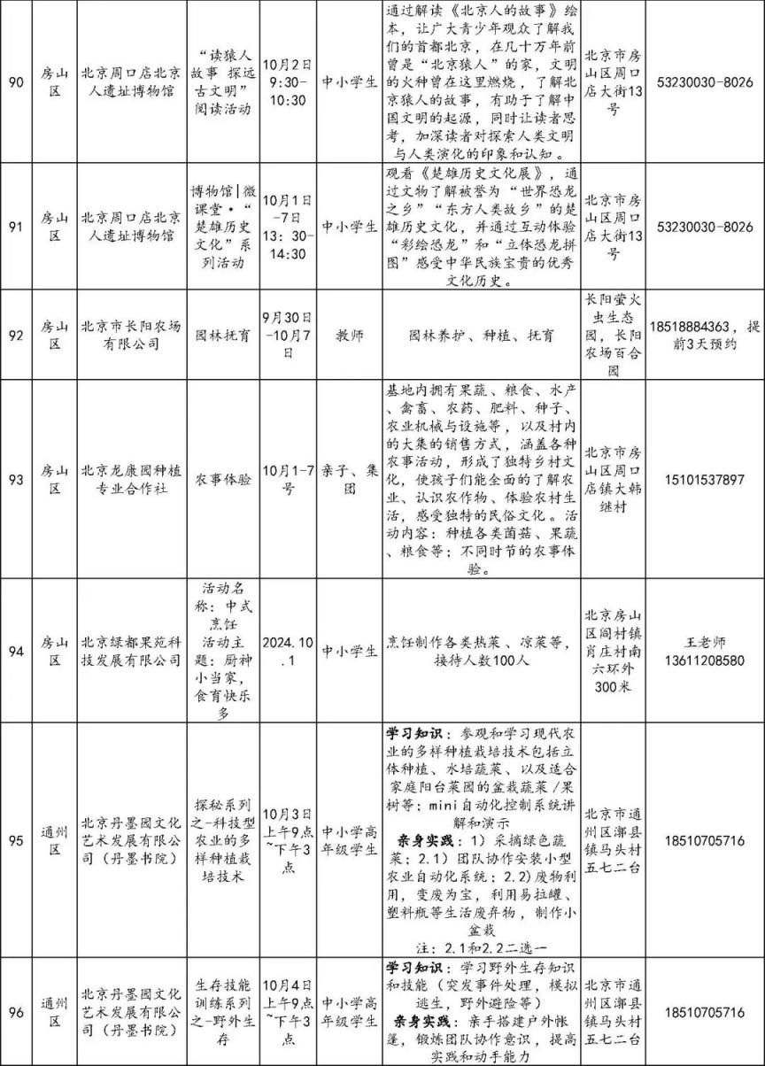 为丰富全市中小学生十一国庆假期文化娱乐生活,发挥社会大课堂资源单位支撑学生成长的教育功能,110家社会大课堂资源单位在国庆期间开展186项相关活动,涵盖文化、艺术、科技、体育、实践活动等多种类型,供学生选择。一起来看