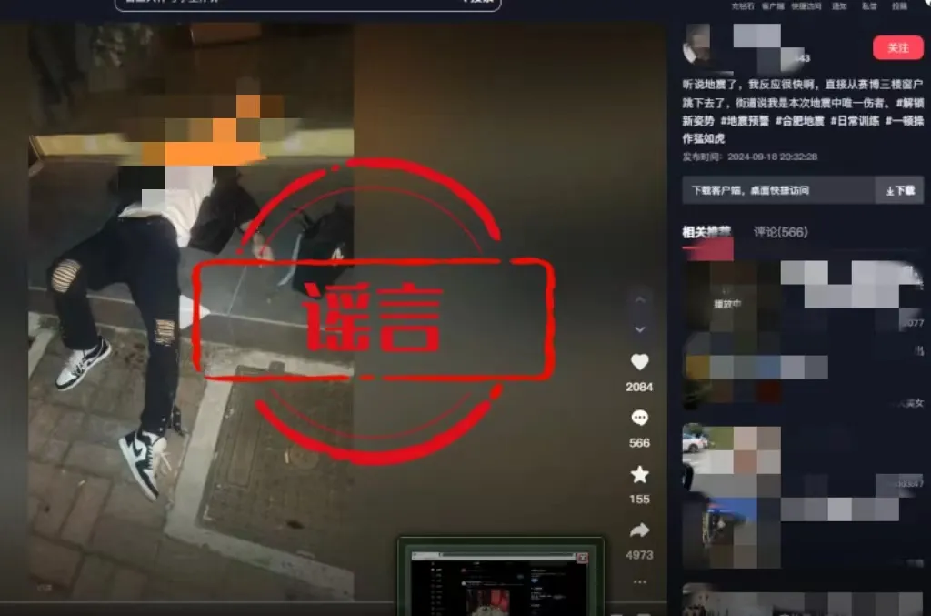 9月18日,许某通过网络平台发布视频称合肥发生地震时,自己果断从三楼跳下逃生,成为本次地震唯一受害者。经查,许某为吸粉引流,将自己之前醉酒躺在地上的照片编造为从三楼跳下受伤照。该视频引发大量网民关注,扰乱公众秩序。