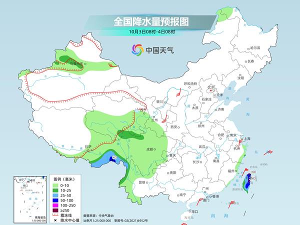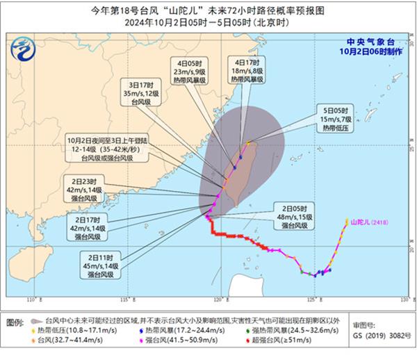 台风山陀儿或于今天(10月2日)夜间到明天上午登陆台湾岛,并与冷空气结合带来强风雨天气,风雨具有一定极端性,需注意做好防范措施。中东部其他大部分地区未来三天降水稀少,一派秋高气爽,适宜外出游玩;西南地区多阴雨天气,公众外出请留意交通安全。