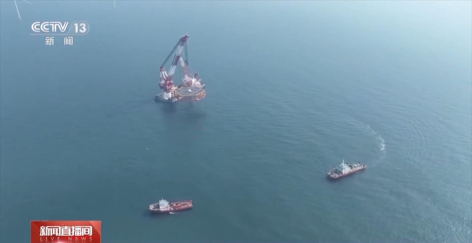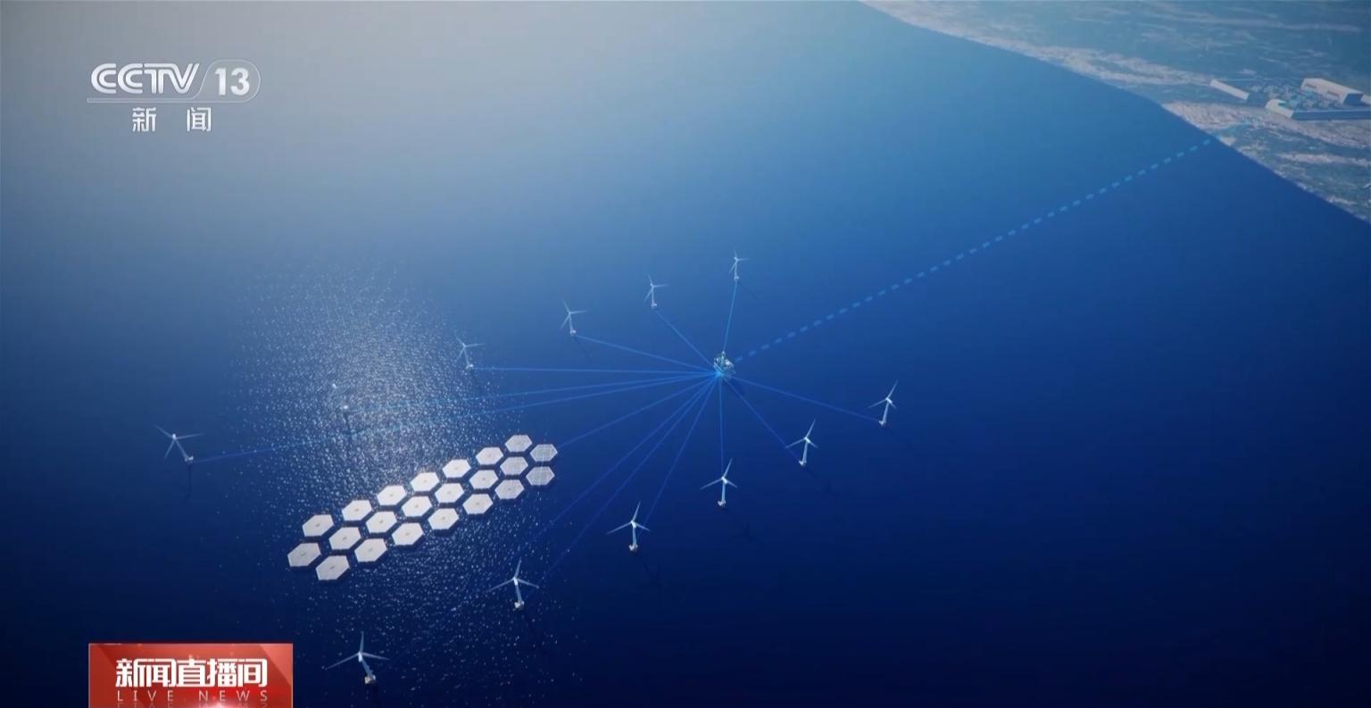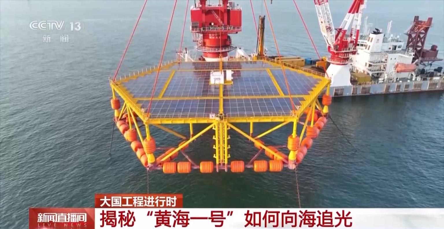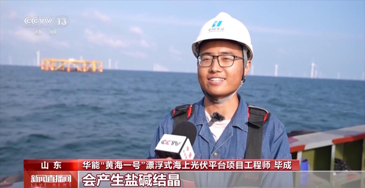 总台央视记者 古峻岭:我们可以看到黄海一号这个光伏平台的作业区域,是位于山东半岛华能的海阳风电场。周边有很多风电机组,这个光伏平台和这些风电机组共享电缆。这种风电和光伏互补的模式,可以更好地确保电网的稳定和安全。