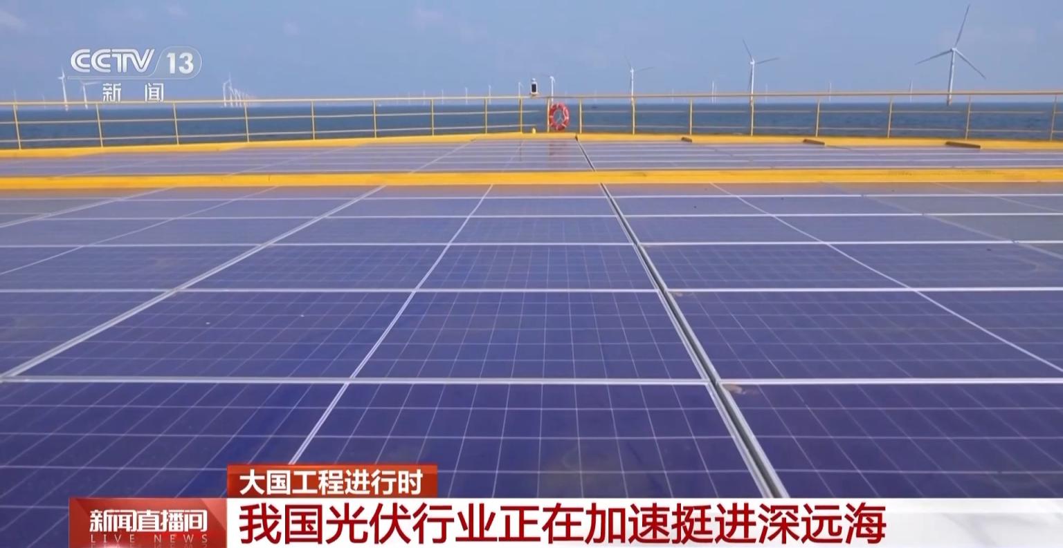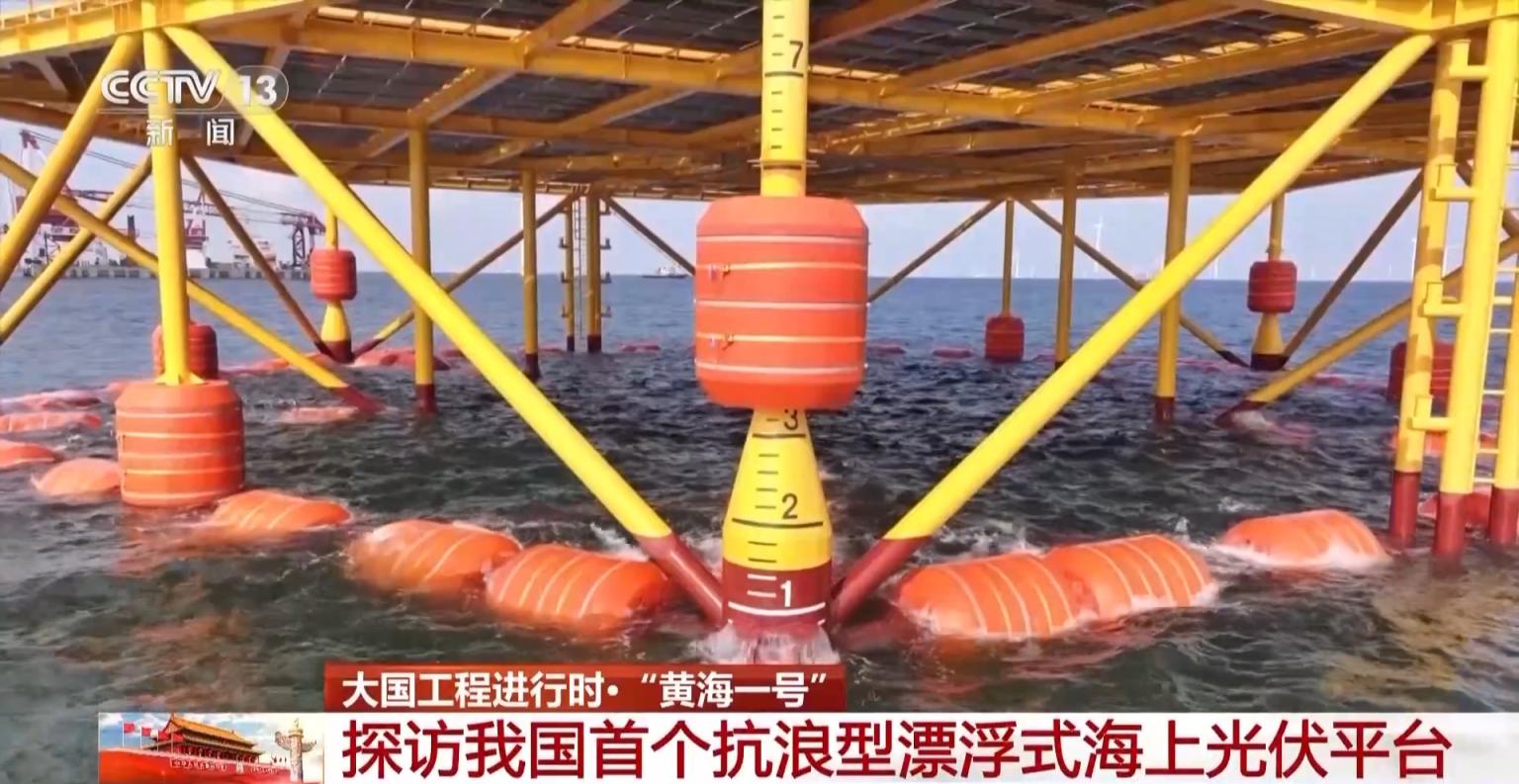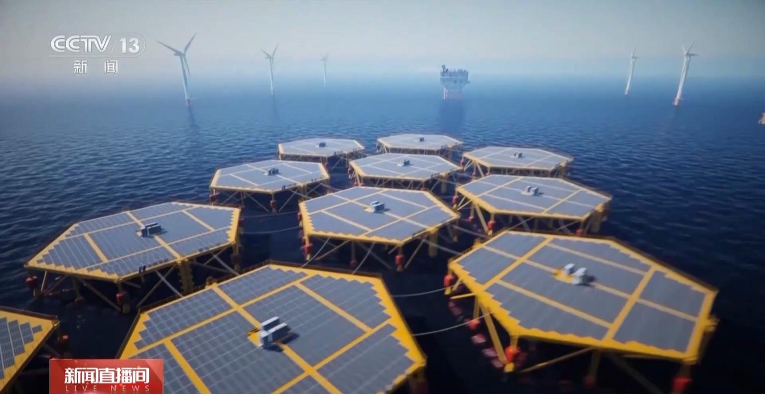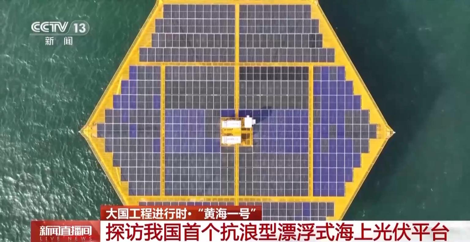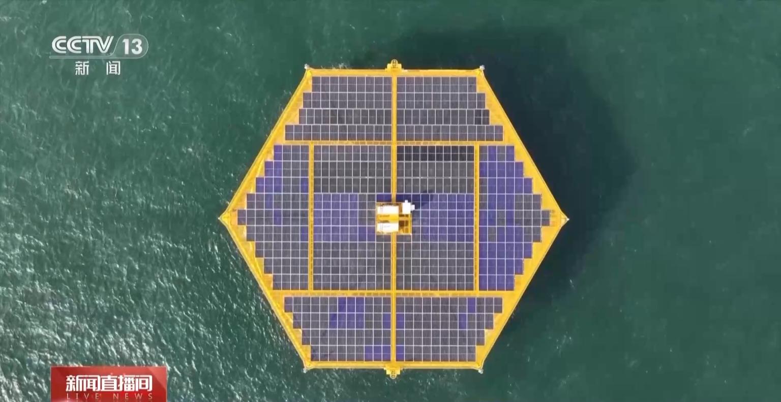 总台央视记者 古峻岭:这里是我国首个抗浪型漂浮式海上光伏平台。我们可以看到,整个平台是一个巨大的六边形。六边形和四边形、三角形相比,能够铺设更多的光伏板。这六边形只是一个单元,未来许多个这样的六边形拼接在一起。就像一个巨大的蜂巢一样,有着非常优异的稳定性。