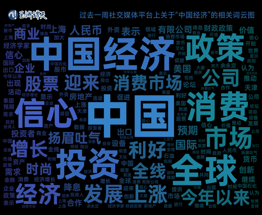 谭主对过去一周社交媒体平台上中国经济相关的讨论进行大数据分析,得到了这样一张图。