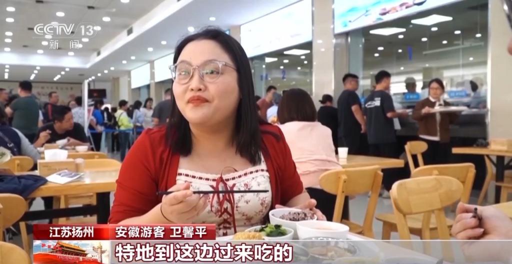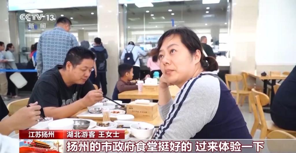 湖北游客 王女士:扬州的市政府食堂挺好的,过来体验一下,狮子头味道都挺好的。