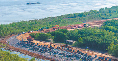长江安徽芜湖段整治工程施工现场。该工程建成后可进一步提升防洪能力,改善生态环境。肖本祥摄(人民视觉)