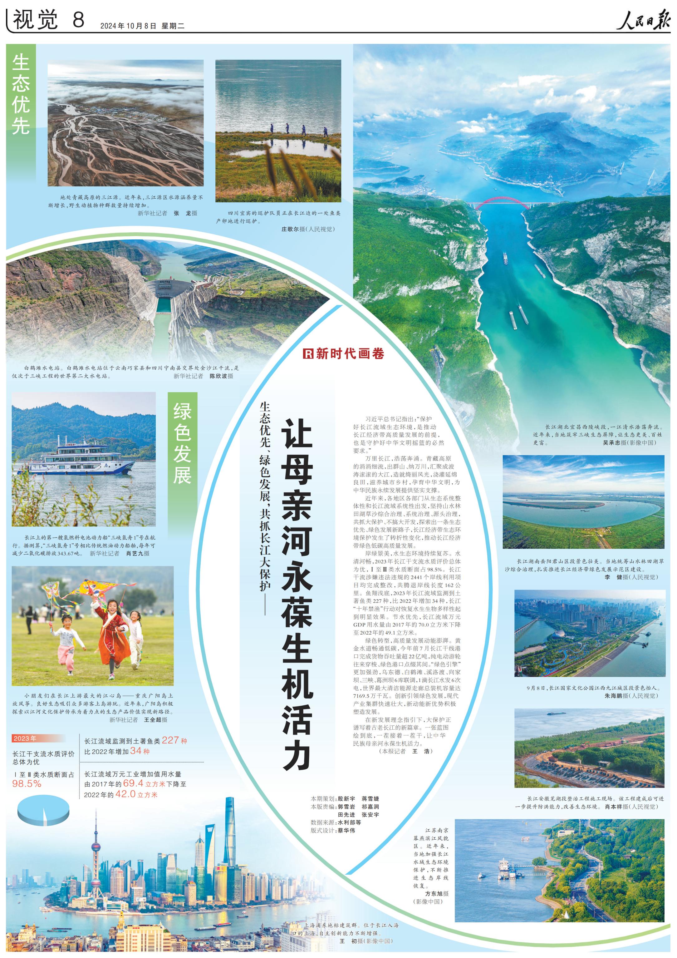 在新发展理念指引下,大保护正谱写着古老长江的新篇章。一张蓝图绘到底,一茬接着一茬干,让中华民族母亲河永葆生机活力。