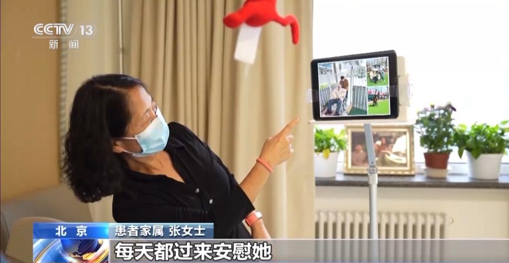 91岁恶性肿瘤终末期患者刘奶奶的病房里,摆放着全家福照片,女儿不时用平板电脑给母亲播放全家人在一起的幸福瞬间,让温暖和老人相伴。