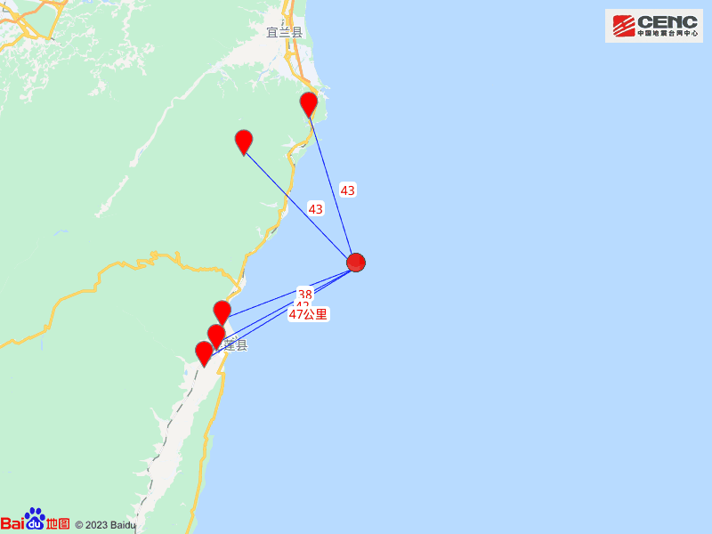 周边县城:震中距新城乡38公里、距花莲市42公里、距南澳乡43公里、距苏澳镇43公里、距吉安乡47公里,距花莲县40公里,距台北市104公里。
