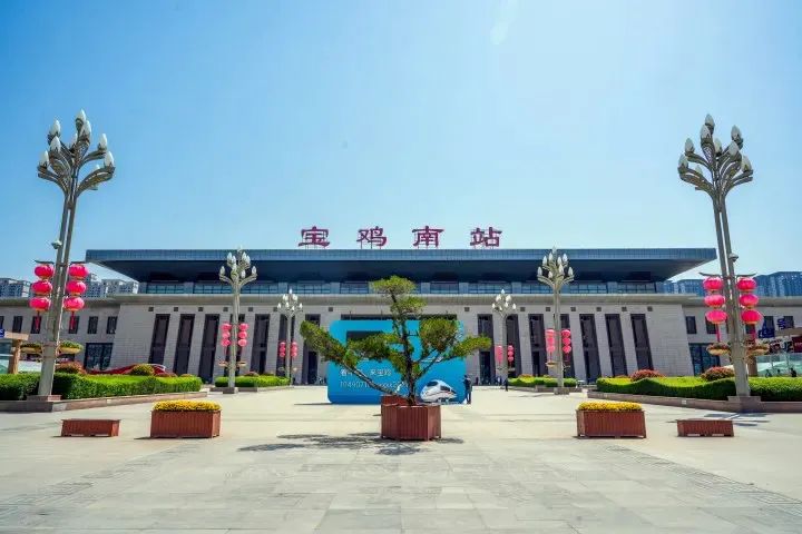 另一座是宝鸡南站,徐兰高速铁路上重要节点车站之一,建于2012年11月。车站造型结合周秦高台式建筑,现已成为宝鸡的重要地标。